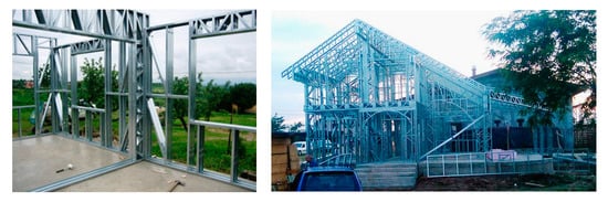 An important benefit of the lightweight steel framed construction is its high safety in cases of earthquake. There are many studies [,] on the seismic behavior of lightweight structures, models and simulation of structural components deformations with, or without, considering joints, connection elements and non-structural components. One relevant conclusion is that even if the most advanced and very detailed numerical models can adequately predict test results, work still remains to bring the findings of research to design practice guidelines.