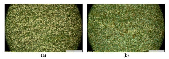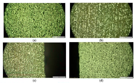 The good point was that material’s burning was avoided, and the process could be correctly performed on rectangular material samples. Still, at a glance, one could notice the poor surface change. The metallographic analyses on the samples evidenced the poor transformation of the pearlite into bainite/martensite—see Figure 6 (the metallographic structure of the sample before and after the induction process was on).