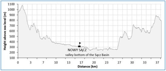 Location of the air monitoring station in the SE–NW profile of the Sącz Basin.