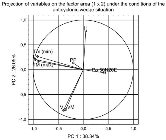 The analyses were carried out without distinguishing types of weather, which significantly affect the dispersion of air pollutants [22,40,41]. The highest PM10 concentrations were noted during high-pressure, non-directional weather conditions, i.e., an anticyclonic wedge (Ka), which often shapes the weather throughout the year, especially in the winter [15,16,17,39,41]. Therefore, an analogous PCA analysis for this situation was also carried out (Table 4).