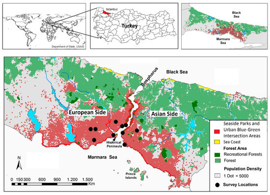 As is the case in many European cities [25], Istanbul has become a high-density city, resulting in the trend of the disappearance of natural green spaces. This research has originated from the raised concerns regarding how and where people meet their needs of daily recreation and nature experience and keep their connection with nature in such a large urban city. It addresses a crucial but relatively unexplored question on people’s perceptions about, preferences of, and expected benefits from nature and nature experience, with the premise that understanding these provides critical information to develop policies and practices focusing on human-nature contact.