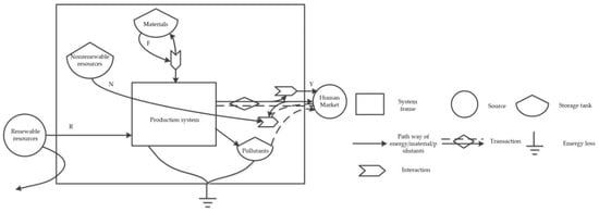Although the above comprehensive evaluation methods achieve the synthesis from different perspectives, synthesizing all inputs and outputs is difficult because the analyzed objects cannot be summed up. The emergy analysis method established by Odum [41] effectively solves the above problem. Emergy analysis is a method based on thermodynamic laws, general system theories [42], energetics [43], and measuring both the productivity of natural resources and human socio-economic resources. To conduct an emergy analysis, a system is converted into a network of energy streams and a measure of solar emergy assigned to energy flows [44]. Solar emergy represents the total amount of available solar energy that was directly or indirectly used to generate or support a given product or service, and it is calculated in solar equivalent joules (sej) [45].