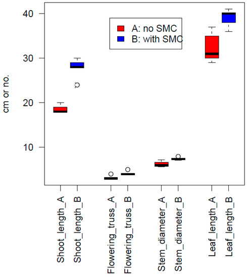 Significant positive effects on greenhouse plant crop growth from adding SMC reported by others can be categorised as (1) Substrate substitution for seedling production, no mineral fertiliser added [14,19,20,23,24]. (2) Substrate substitution for plant production, with additional mineral fertiliser added [11,16,25,26]. (3) Addition to natural soils as an organic amendment/biofertiliser, no mineral fertiliser added [9,17,18,27,28]. (4) Addition to natural soils as an organic amendment, with additional mineral fertiliser added [19,29]. Sustainable utilisation of the SMC is usually a primary motivation for the research. In cases 1 and 2, finding cheap substitutes for commercial substrates or peat is also an important factor. For 3 and 4, there is the additional prospect of improving the general structure, fertility and available nutrients of the soil. Stimulated growth was a secondary positive consequence.