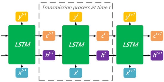 The LSTM artificial neural network is a recurrent neural network (RNN) proposed by Hochreiter and promoted by Alex Graves []. The long short-term memory function is added so that the information will not be attenuated, which solves the gradient vanishing and exploding problems during the long sequence training process of RNN. Figure 3 illustrates the network structure of the LSTM. There are two states in LSTM: the long term memory and the short term memory . An LSTM unit has three inputs and three outputs. For time t, the inputs are the data input at time t and the long term memory and short term memory at a previous time (t − 1) whilst the outputs are the data output , long term memory and short term memory at time t.