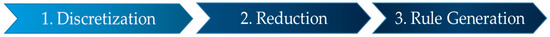 Figure 1. They are discretization, reduction, and rule generation. First, data discretization is the process of transferring continuous data into discrete counterparts by determining boundary values. Nguyen and Skowron [