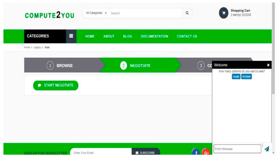 An IT artifact, prototype of the negotiation offer strategy and chatbot for automated negotiation agent in the e-commerce portal were designed for the agent-human negotiation. They were developed using Php and MySQL languages. The e-commerce website was accessible at compute2u.name.my. The essential functional modules of the system include the negotiation agent that implemented the negotiation offer strategy (See Figure 3). Another function implemented in system is the chatbot for interaction between negotiation agent and human. The chatbot is artificial intelligence (AI) software that can simulate a conversation (or a chat) with a human in natural language through websites [50]. The negotiation agent represented the seller and the human negotiator represented the buyer.
