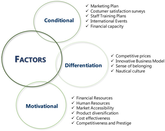 Finally, companies have the great challenge of becoming architects of their own history, of gaining influence in the public policy for promotion and support to their industry for the internationalisation process. To do this, they must be aware of the attributes and capabilities that guarantee international success, have detailed plans and knowledge about the foreign markets and new urban areas of nautical development, from the point of view of supply and demand, thus, recognising their competitive advantages within the same. Indeed, the best possible strategies for internationalisation in nautical destinations are the ones that promote interest and motivation among nautical firms to grow towards the future and broaden their market in the best socio-economic and environmental conditions for their sustainability.