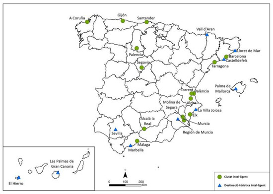 The study includes 25 cases of tourist cities and municipalities in Spain that have implemented smart city and tourism strategies (see Figure 1).