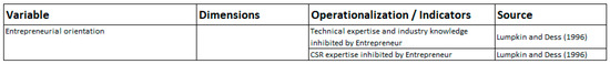 Entrepreneurial orientation was captured by asking the start-up owners about their experience and expertise. An overview of this operationalization can be found in Figure 4.