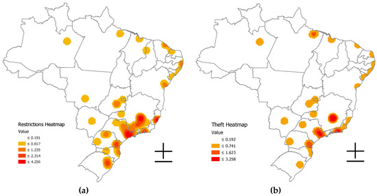 (a) The heat map of urban freight vehicles restriction and (b) cargo theft in Brazilian cities.