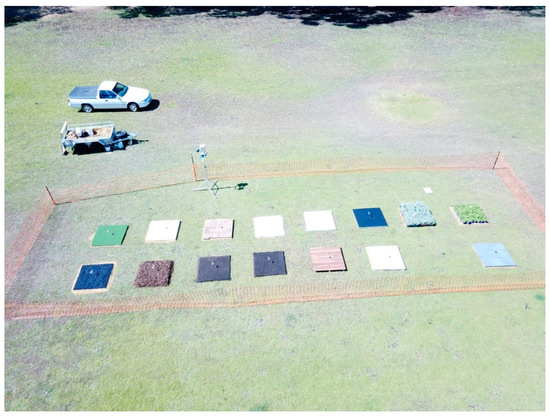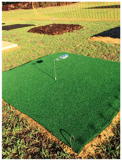 | Black-painted polystyrene | Polystyrene sheet (1200 mm × 1200 mm × 40 mm) painted with exterior low sheen black (4 Seasons, British paints), and then spray painted with flat black enamel (Rust guard, White Knight) | 40 | turf grass |