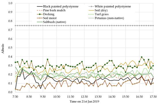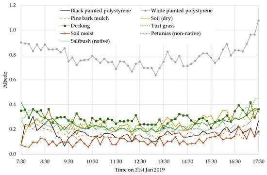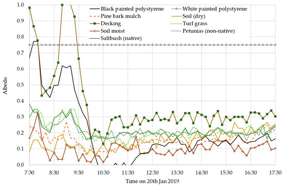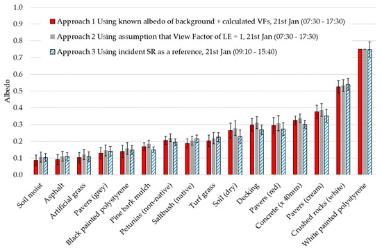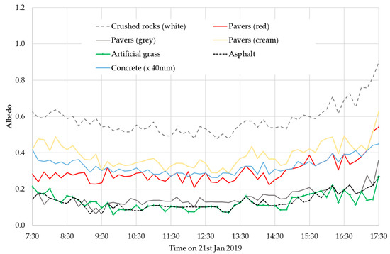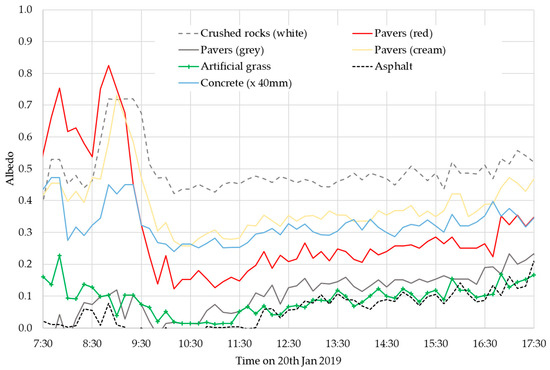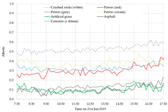 - Li, H.; Harvey, J.; Kendall, A. Field measurement of albedo for different land cover materials and effects on thermal performance. Build. Environ. 2013, 59, 536–546. [Google Scholar] [CrossRef]