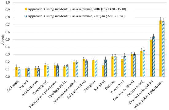 3.6. Albedo Using Incident SR Reference—Approach 3
