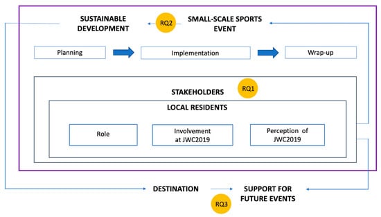 Some scholars have highlighted the importance of the characteristics that determine or classify a sports event as a small-scale event. [,]. All research questions in this study refer to a small-scale sports event, investigating several implications such as the perceptions of stakeholders in general and residents in particular.