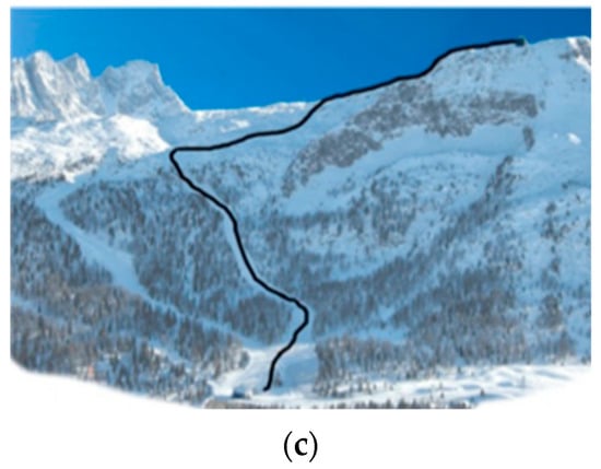 (a) The Val di Fassa—Trentino map (ITA) and (b) Aloch Ski Stadium of the World Junior Alpine Ski Championships 2019 in Val di Fassa-Italy (JWC2019), reconditioned in 2018. (c) La VolatA Slope for the JWC2019, renovated in 2018. Photo credits: (a–c) APT Val di Fassa.