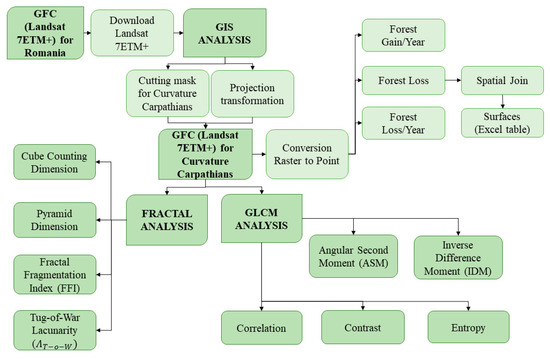Flowchart of mapping forest changes in Curvature Carpathians using GLCM and Fractal Analysis.