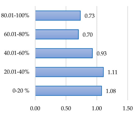 Fractal Fragmentation Index () quantifies information obtained through fractal analysis of areas and perimeters, in a single value, describing the fractal fragmentation and therefore, can be interpreted as a compaction index [20,37].