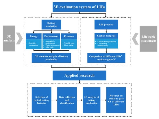 Overall, a 3E evaluation system of LIBs has been constructed to compare different battery production situations and LIB products. An applied research was conducted to analyze the general 3E development of the LIB industry in China. The research framework of the study is shown in Figure 1.