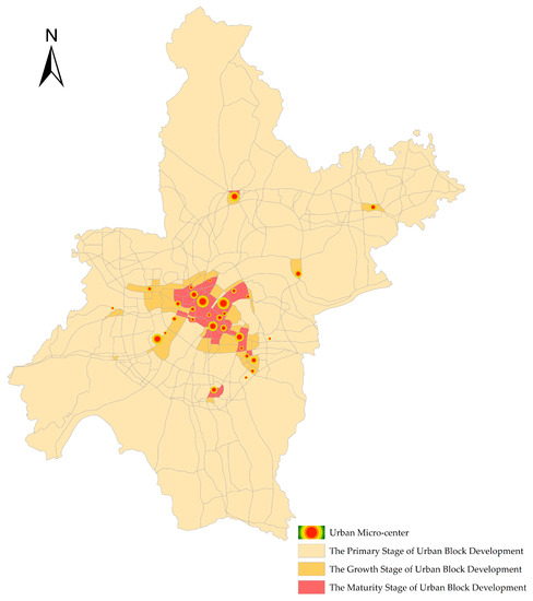 It can be concluded that the geographical distribution of micro-centers in Wuhan is in line with the spatial pattern of urban block development. The streets overlapped with the micro-centers are consistent with the streets distributed in the blocks at the maturity stage. The higher the maturity of the block is, the more the number of micro-centers is and the larger the range of its influence is.