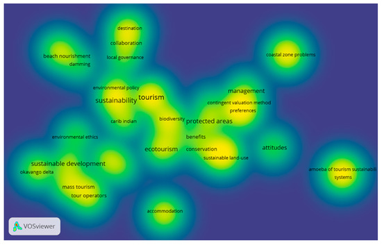 There are other terms that stand out above the rest during this period, such as “ecotourism”, “protected areas”, and “sustainable development”. This fact is linked to what Buckley points out about the research topics that emerged in the area of sustainable tourism: environmental impacts, natural parks, practices in natural environments, which reflects the conceptual construction of sustainable tourism that was taking place [16,25,63,64].