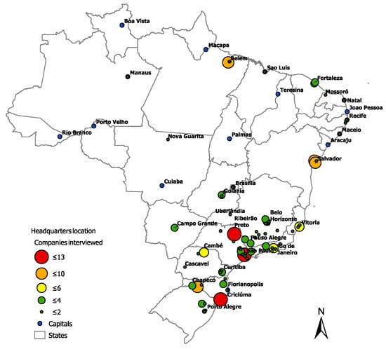 We interviewed 202 logistics operators in Brazil between July and August 2018, using a web-based survey. The location of the company headquarters is presented in Figure 2. These companies deliver beverages, fresh food, clothing and shoes, electronics, hygiene and medical products, books, newspapers, furniture, and others goods to almost all metropolitan areas in Brazil. All surveyed companies perform urban deliveries in cities with high population density in Brazil; in general, the largest companies operating in cities with the largest concentrations of people were interviewed. The gross sales (in REAL) and number of employees are presented in Figure 3: 72% of the companies surveyed were large (over 100 employees) and have significant daily challenges to deliver goods.