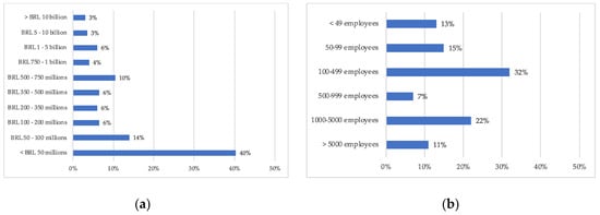 Characteristics of the companies: (a) gross sales (in REAL); (b) number of employees.