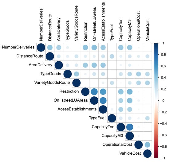There is a keen interest in understanding how freight operators make decisions about the type of vehicle that should be used for the distribution of goods []. The complexity of the urban freight transport process influences the type of freight vehicle chosen to perform urban deliveries. In this way, some attributes related to the different characteristics of the vehicle, product, and route influence this choice.