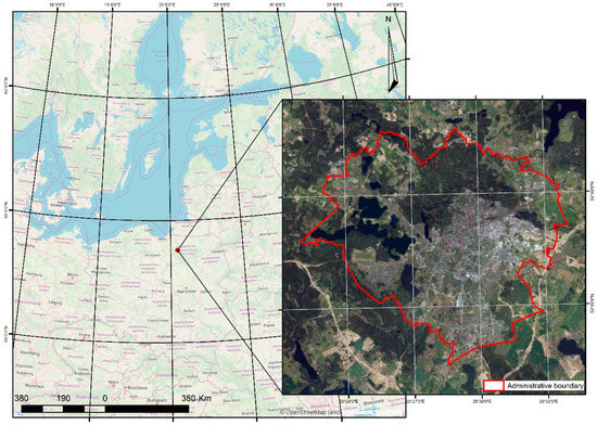 The main settlement unit within the analysed area is the city of Olsztyn (Poland). The city is the capital of Warmińsko-Mazurskie Voivodeship and a significant urban centre in north-eastern Poland, as shown in Figure 1.