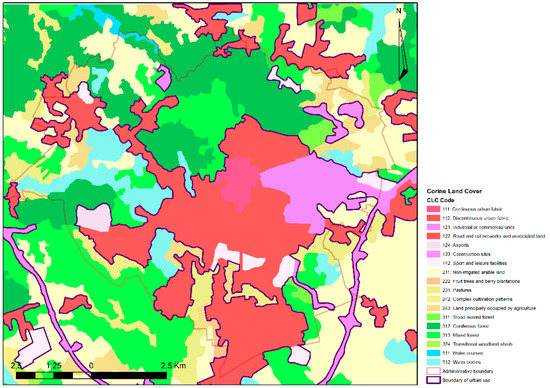 Land use model in the area under study based on the Corine land cover (CLC) data.