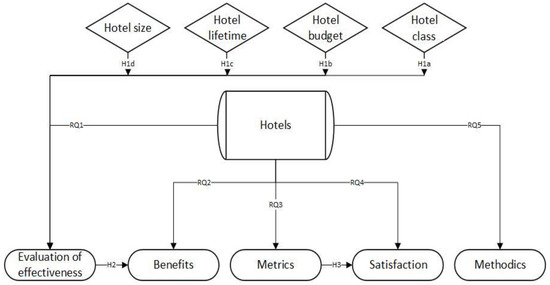 In order to meet the main objective of the paper, the conceptual scheme of research elaboration shown in Figure 2 was used. The scheme is based on theoretical knowledge from secondary research and data obtained from primary research, and illustrates the connection of the research questions and hypotheses to individual factors.