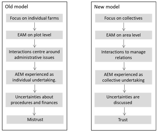 Although the importance of these different forms of trust is regularly mentioned, few studies actually explore how interpersonal and institutional trust interact, and how these different forms of trust are affected by particular institutional designs for collective action in agri-environmental management. A better understanding of the impact of the design of such models on trust is key to the ecological effectiveness of agri-environmental schemes because institutions influence the way in which participation, cooperation, and management practices are organised and are perceived by various stakeholders [7,10] and how collective action develops (2015, p. 8).