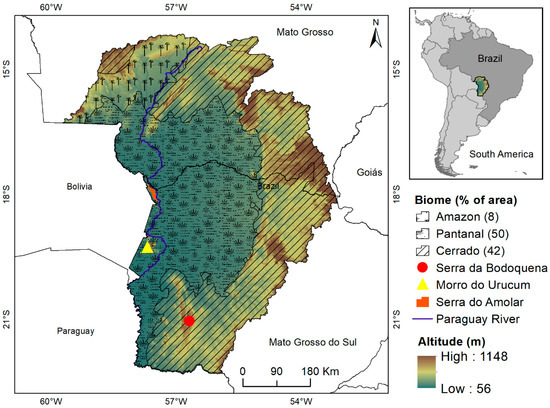 Location of the study area, highlighting the Amazon, Pantanal, and Cerrado biomes within the Upper Paraguay Basin.