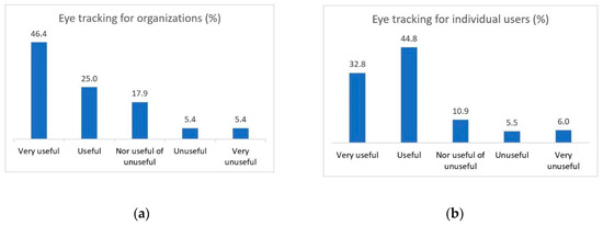 Figure 5a,b). The average score from business perspective is 3.42 and from individual’s perspective is 3.39, which demonstrates a relative indifference to this neuromarketing application.