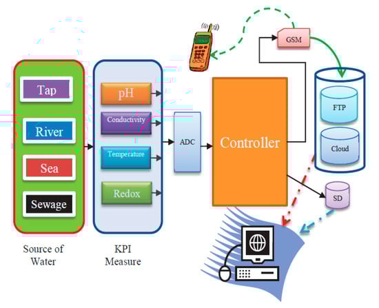Environmental and ecological changes have put various marine species at risk of extermination and poses a real threat to biodiversity. Several species in coastal areas are vulnerable to climate change and environmental pollution. Similar circumstances are also applicable for human beings. Frequent monitoring and observation of various water parameters are required to maintain the high water quality levels that are necessary for living beings. An appropriate range for various water parameters can be identified as a key performance indicator (KPI), for the water quality, particularly for a geographic location [,,]. Water is an unavoidable requirement of livelihood for billions of people all over the world, due to industrialization, the massive growth in population, excessive use of chemicals for agricultural activities, reclamation of land, and oil spillage into the water, and it is being contaminated at an alarming rate which is now a matter of concern. Therefore, it is important to monitor and test water quality real-time on a regular basis to take necessary steps in order to reduce water pollution and control the quality of water whenever it is necessary. The accessibility of quality water is essential for disease control and for enhancing health.