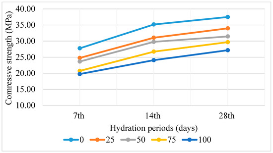 Figure 6. Variation of the compressive strength with hydration period.