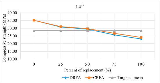 Figure 12. The 14th day compressive strength of DRFA and CRFA.