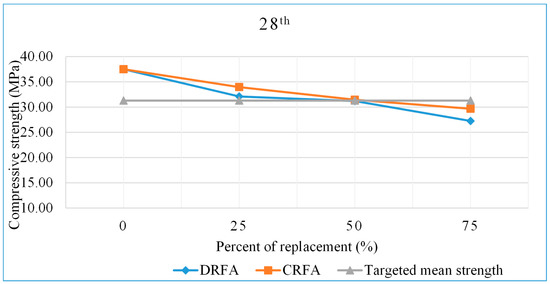 Figure 13. The 28th day compressive strength of DRFA and CRFA.
