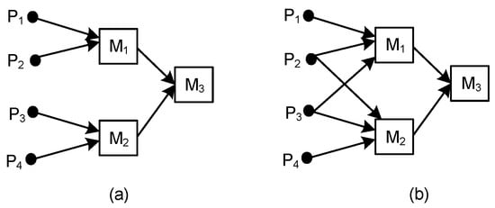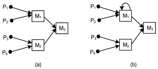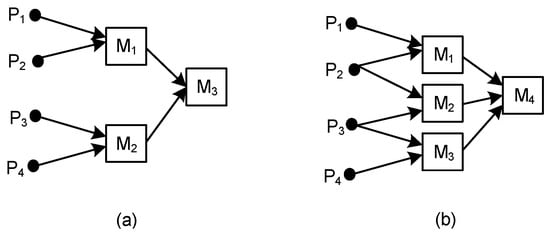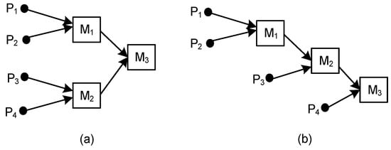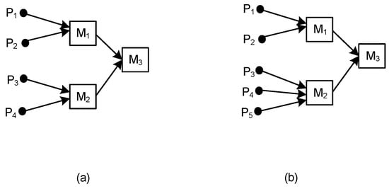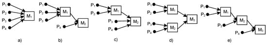 The selected complexity indicator was applied on the following examples of ASCs by Hamta et al. [] (see Figure 2). All the five ASCs had the same number of input components, but they differed in the number of operations and the number of machines.