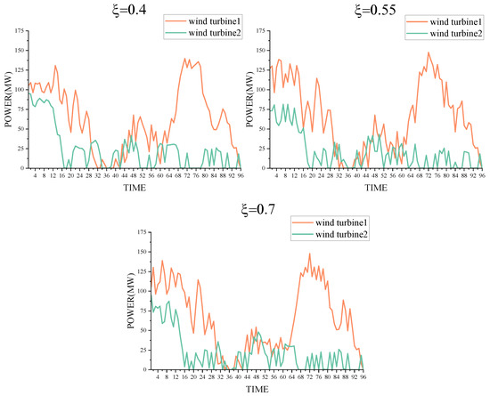 Table 16. Total pre-output of wind turbines under the penalty coefficient of wind curtailment in the day-ahead stage during 96 time periods.