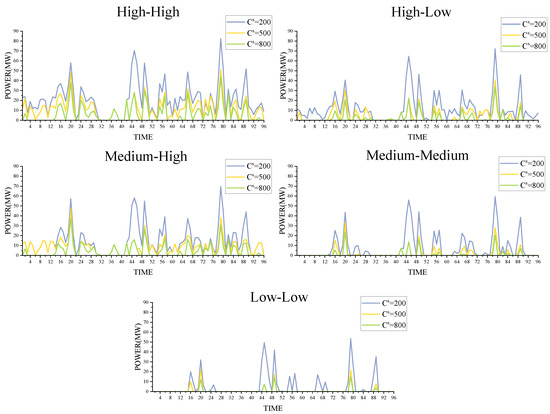 Table 4. Each balance unit output under different wind power output combination in the real-time stage during 96 periods.