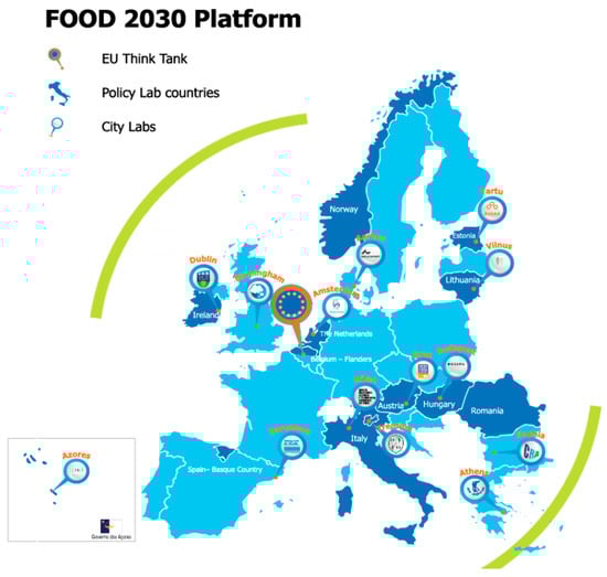 - Magarini, A.; Porecca, E. European Cities Leading in Urban. Food Systems Transformation: Connecting Milan & FOOD 2030; European Commission, Directorate General for Research and Innovation (DG RTD): Brussels, Belgium, 2019. [Google Scholar]
