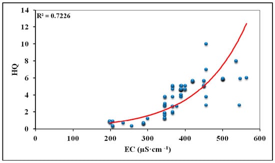 Relationship between hazard quotient (HQ) index and electrical conductivity (EC) using multivariate adaptive regression splines (MARS) model.