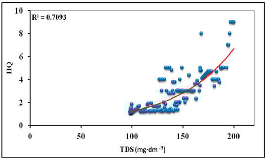 Relationship between HQ and total dissolved solids (TDS) using the MARS model.