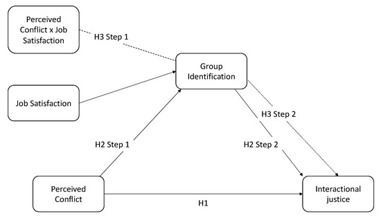 It is a fact that conflict is a key factor of social exchange [9,10] that may create relational stress, exacerbating ineffective exchange between coworkers. Conflict may harm trust as well, and may be seen as either affective conflict or task conflict [9]. Furthermore, it has been demonstrated that interactional conflict may elicit interpersonal and emotional responses, such as loss of focus, and may hinder decision-making processes [11,12]. However, we believe that conflict is a necessary growth path that can be tackled positively and constructively. Positive affective processes, such as those related to job satisfaction, may lead to positive group identification, which may help in problem resolution, for example, via perspective-taking approaches [13]. Lastly, group identification has been related to interactional justice in previous research studies [14].