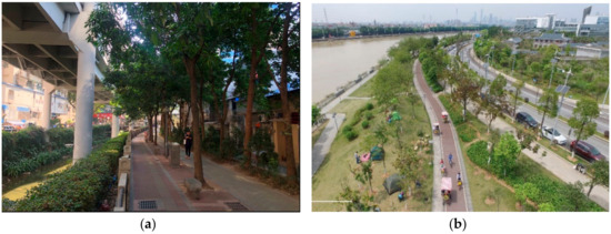 Donghaochong Greenway (a) and Biotech Island Greenway (b). (Source: Photo by the second author).