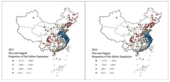 | Inflowt-1 | One-year-lagged proportion of net inflow population in permanent population | 6.11 | 12.28 | 0.00 | 77.90 | 808 | “China City Statistical Yearbook” “China Statistical Yearbook For Regional Economy” |