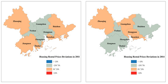 4.4. Analysis of the Spatiotemporal Characteristics of Price Deviations based on Three City Clusters