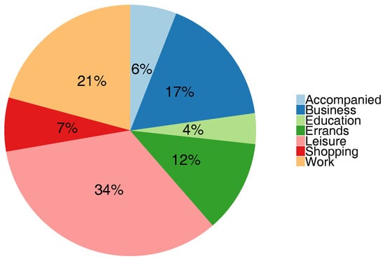 The estimation and assessment of emissions is widely established and emission comparisons between transport modes regularly follow a distance-based approach. Emissions are measured either per kilometer or passenger kilometer (pkm), so that destinations are assumed to be exogenous. While this approach is appropriate for business trips or visiting family and friends, it may fail for other travel purposes like leisure or holiday, where destinations are determined endogenously. Consequently, distances can vary between transport modes and thus emissions can diverge even more. While research on distance-based transport emissions and environmental costs is extensive (see e.g., References [,,,]), there has been less research on whether these estimations are appropriate for different travel purposes.