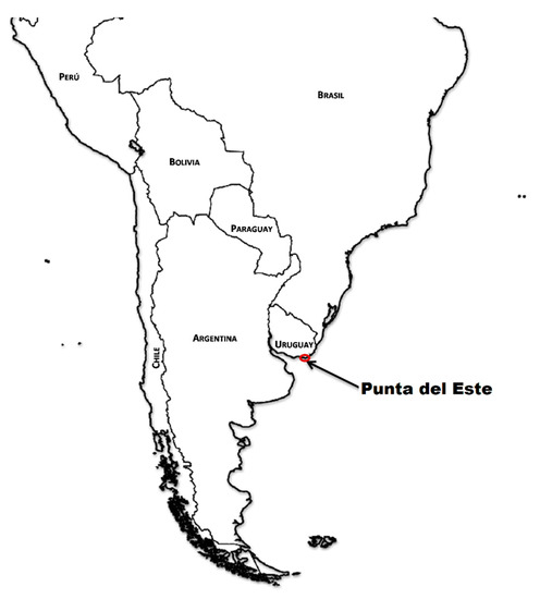 In order to achieve the objective of this paper, a sample of inhabitants from Maldonado and Punta del Este was analyzed through Structural Equation Modeling [37]. Punta del Este (Figure 2) is a town adjacent to the city of Maldonado, the capital of the Department of Maldonado (Oriental Republic of Uruguay), which is internationally known as a tourist destination [5]. The population of Punta del Este is 9200 people, but in the conurbation of Maldonado-Punta del Este, there are more than 100,000 inhabitants. Punta del Este is a sun and beach destination that receives more than 689,000 tourists a year, mostly from Argentina [139].