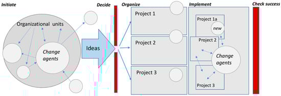 In our study we found that smaller large-sized Austrian companies need change agents to drive sustainability activities and control/motivate other employees, since sustainability projects include diverse organizational units in all project phases. Project phases were also used to demonstrate how change agents can leverage their impact on organizational level. The top factors promoting sustainability implementation are rooted in personal and organizational values, for example, organizational culture, corporate philosophy or personal interest. However, the lack of resources for sustainability implementation is inhibiting the sustainability implementation, as organizational inertness and other barriers to change keep managers from redistributing the resources in favor of sustainability management. Change in routines, role extension and even dual roles challenge employees in sustainability implementation processes. We propose handful of strategies to reduce the barriers to organizational change for sustainability, and to broaden the range of sustainability activities.